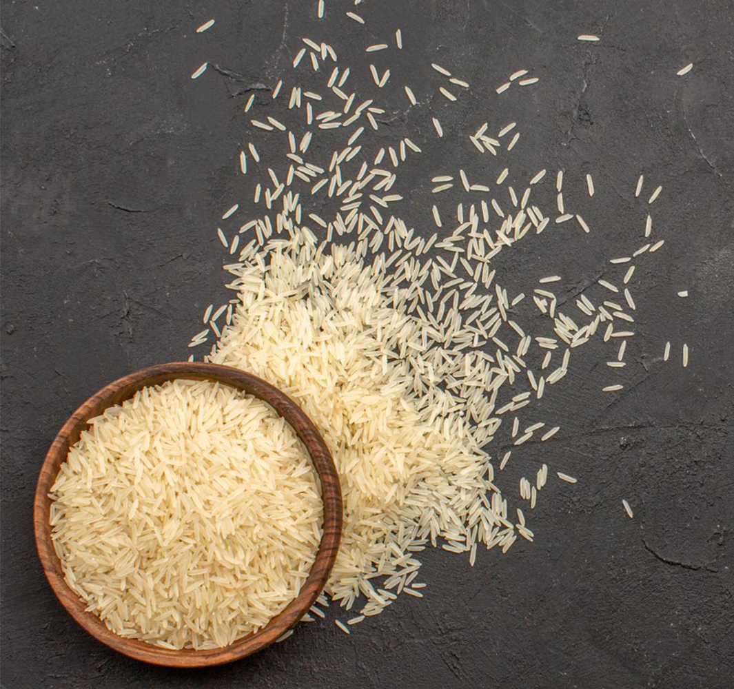 Raw Basmati Rice: Dehusked and polished long-grain rice